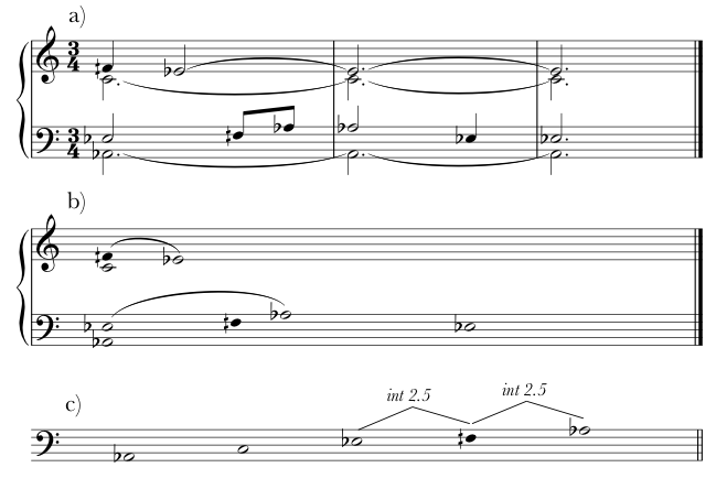 The final three measures of the second movement prolong an A-flat major triad, although the role of the F-quarter-sharp is ambiguous. Is it a passing note that divides the perfect fourth A-flat to E-flat into two equal segments? Or is it a part of an arpeggiation of some kind of A-flat chord with an added quarter-tone sixth?